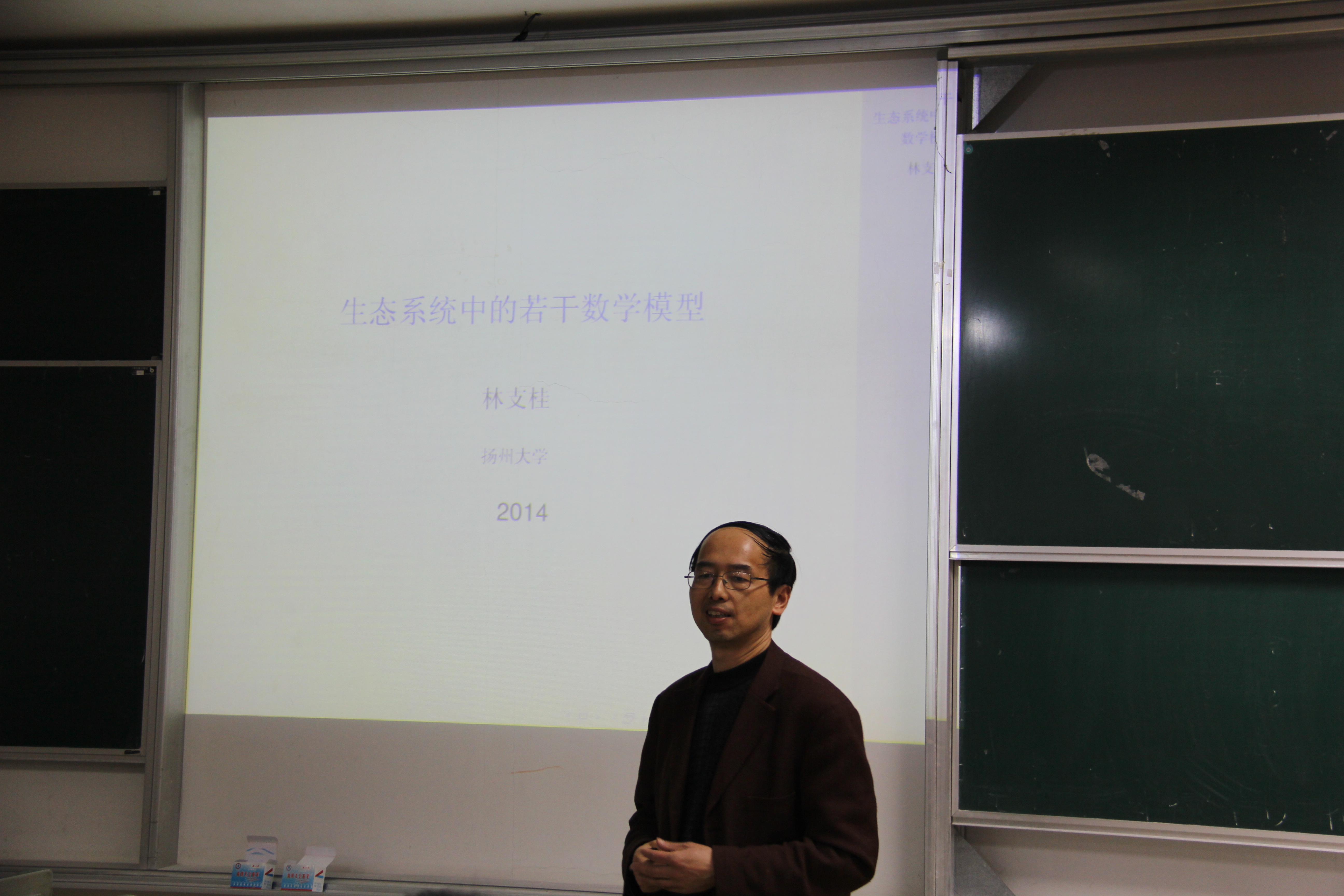 3月28号下午4点,扬州大学博士生导师林支桂教授莅临公司,在综合楼B102教室为数科院学子开展了一场深刻严谨而又妙趣横生的数员工态学讲座——《生态学中的若干数学模型》。讲座由数学科学公司经理郭曙光教授主持,数科院部分老师参加了本次学术讲座。