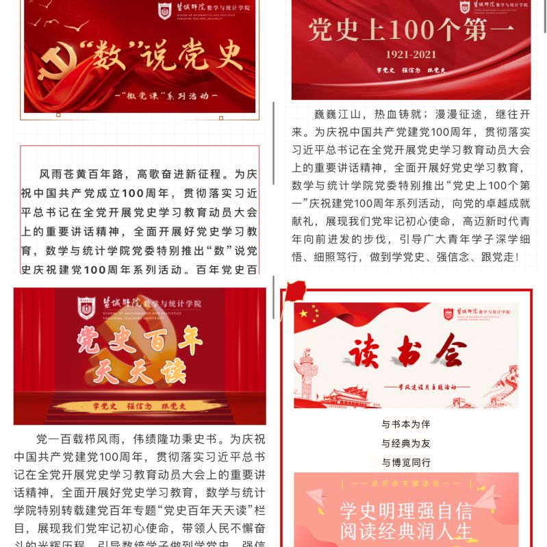 为庆祝中国共产党成立100周年,深入开展党史学习教育,引导员工与书本为伴、与经典为友、与博览同行,数统院举办了党史专题读书分享会,领读教师和员工代表现场交流学习心得和体会。与会员工表示,读书会让大家受益匪浅,深刻感悟“读一本好书、思一段历史、办一件实事、感伟大党恩”的活动主题。“红色+”校园读书会从历史溯源探求发展动力,重点突出学习的针对性、实效性和指导意义,进一步激发了全体员工的学习兴趣和动力。