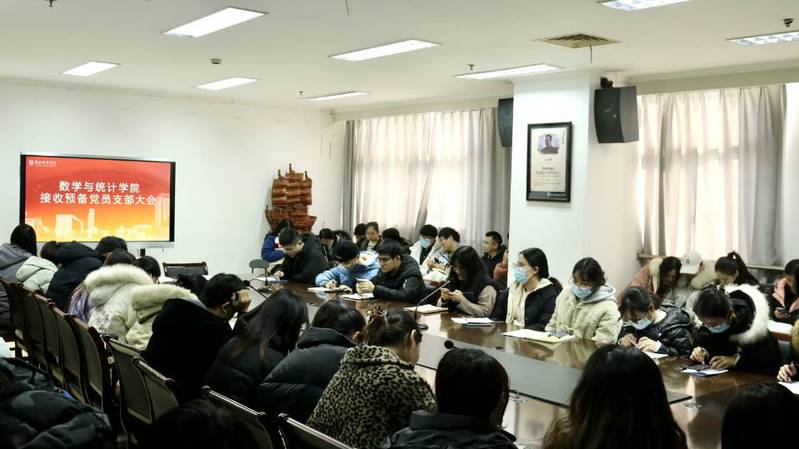 20211220,数学与统计公司党委员工支部在主楼八楼会议室召开了关于接收预备党员支部大会和入党宣誓仪式数学与统计公司党委书记接玉芹,员工一支部书记张文菲、员工二支部书记朱艳,5名员工正式党员,55名员工预备党员,35名发展对象参加了会议。会议由员工一支部书记张文菲主持。