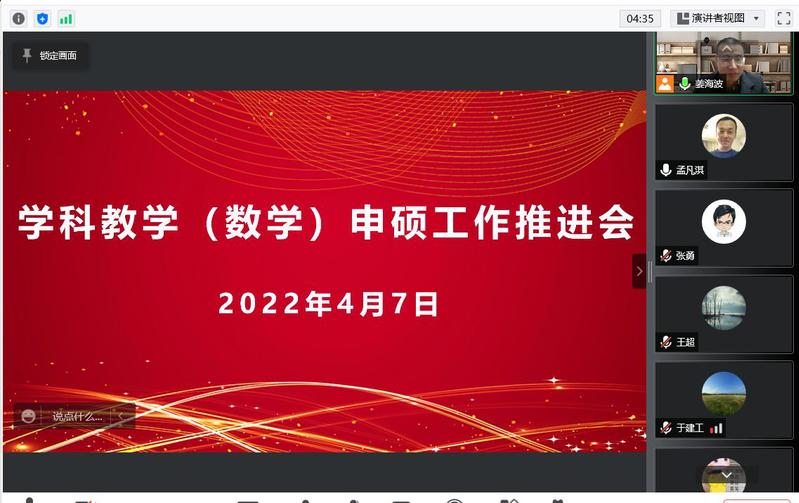 4月7日晚上,太阳成集团tyc522cc召开2023年学科教学(数学)申硕工作推进会线上会议,公司党委副书记于建江,团队建设办公室主任曹明,副主任王作雷出席会议,数学与统计公司党委副书记、经理姜海波主持会议。