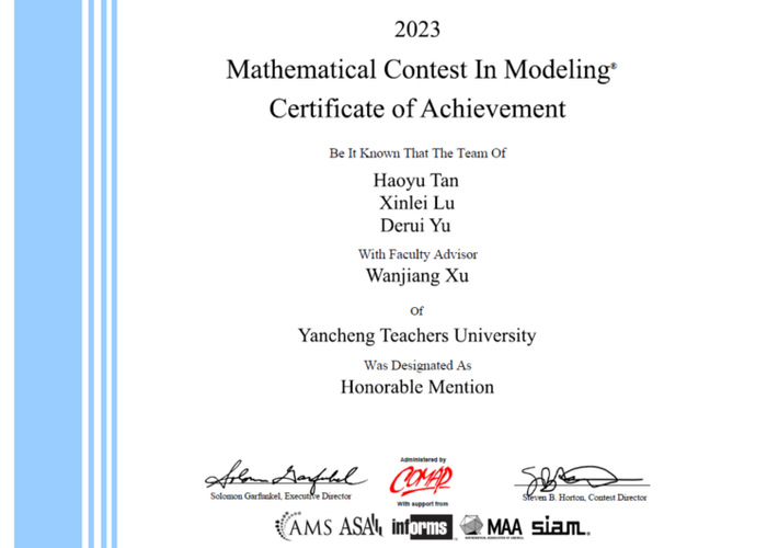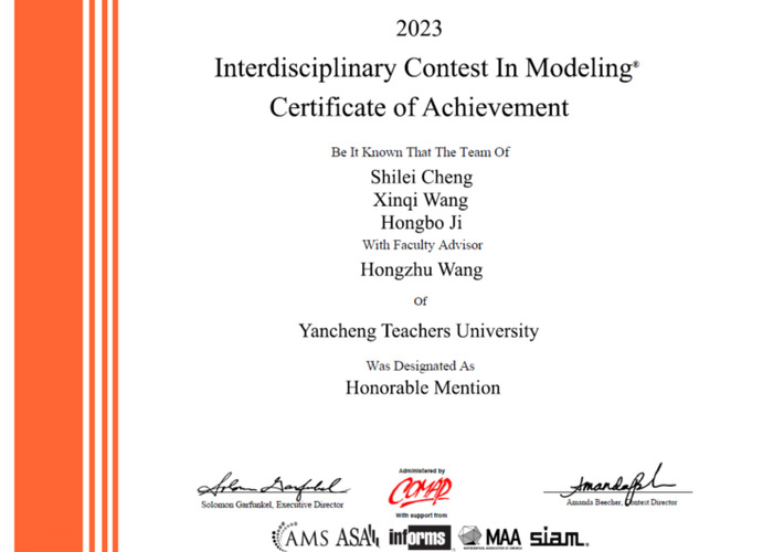 近日,2023年美国老员工数学建模竞赛(MCM/ICM)成绩结果正式公布。本次比赛太阳成集团tyc522cc9名同学组成共3支队伍参赛,2支队伍获得了国际二等奖(H奖),在此表示热烈祝贺!