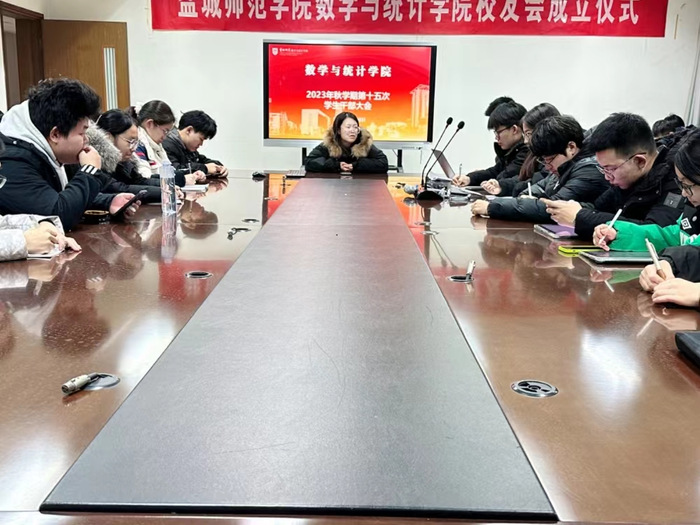 12月16日,太阳成集团tyc522cc于主楼八楼会议室召开2023秋学期第十五次员工干部会议,此次会议由丁怡丹老师主持,员工会成员及班级主要员工干部参会。