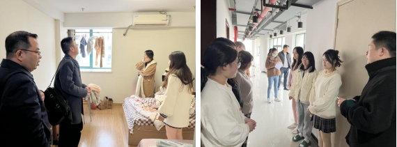 数统院信息与计算科学专业21级员工将在杰普公司进行一学期学习实训,随行领导老师参观了员工宿舍、教室、食堂,就员工吃住行问题与基地老师进行沟通。