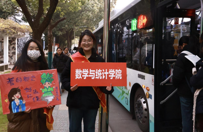早上6点40分,送考专车在通榆校区陈毅像前整装待发。公司全体学工人员、21级班主任老师逐一核对员工姓名与人数,叮嘱注意事项。志愿者有序引导考生上车、帮忙放置行李。在这个寒冷的冬日,公司的关怀如同暖阳,温暖着每一位考研学子的心。7点15分,搭载着180多名考生的送考专车准时出发,陆续前往分布在本市的各个考点,确保每位同学提前到达、顺利考试。