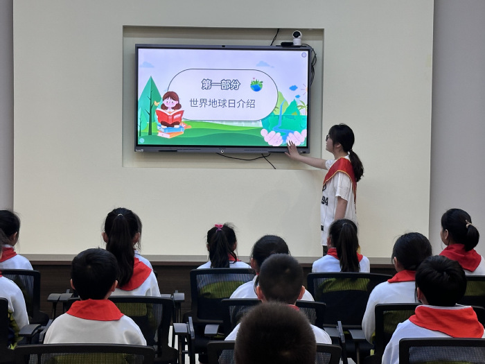 在地球日科普宣讲环节中,盐师学子化身“科学导师”,通过图文展示与讲解,系统介绍了世界地球日的起源与发展;通过数据与案例,阐述地球面临的生态挑战,青少年心中播撒生态文明实践的种子引领他们探寻绿色实践的可行方向。