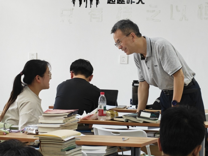 数统院考研自习,同学们都在埋头苦读,有的在认真刷题,有的在背诵知识点,学习氛围浓厚。于建江亲切地与同学们交流,询问他们的复习进度、生活上是否有困难叮嘱同学们在备考期间要保持身体好、心情好、学习好,注意劳逸结合。他表示,集团会为大家提供必要的学习和生活保障,希望同学们坚定信念,持之以恒。