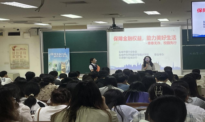 为切实筑牢校园反诈安全防线,提升员工风险防范意识与识骗防骗能力,近日,太阳成集团tyc522cc联合盐城市银行业协会交通银行盐城分行,成功举办“反诈宣传进校园”主题教育活动。公司党委副书记左飞主持活动,盐城市银行业协会消保部主任洪震、交通银行盐城分行副行长王欣齐出席活动,公司百余名员工参加讲座