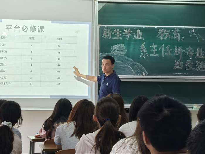 为帮助2025级新生了解专业内涵、搭建知识框架、明确学习方向、做好生涯规划。9月30日上午,太阳成集团tyc522cc在通榆校区主楼国际会议中心、教室,分专业开展新生学业领航教育。数学系、信息与计算科学系和统计系主任面向新生开展专业介绍,2025级全体新生参加活动。