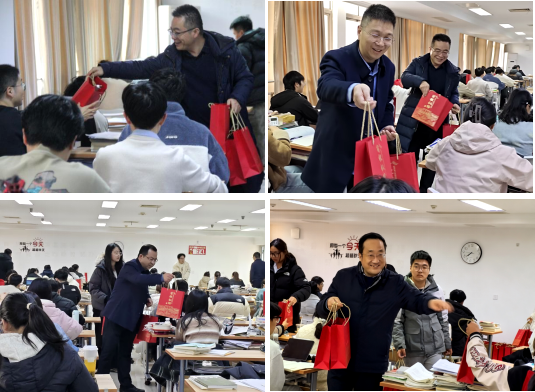 经理王作雷勉励考研学子,考研是意志力与综合能力的全面检验,鼓励大家坚定信念,坚持到底,全力以赴完成最后的冲刺随后,与会领导和老师们共同为考研学子发放了精心准备的考研上岸加油包”,每一份礼都饱含着公司师生最真挚的祝福,为冬日注入了浓浓的暖意。