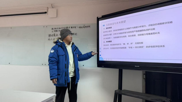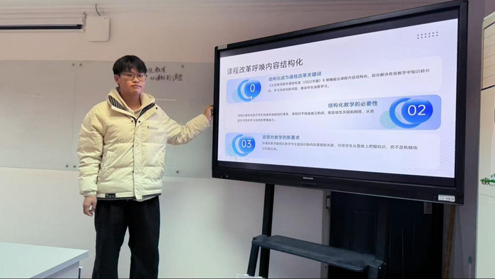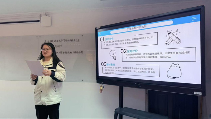 汇报中戴模从数字技术驱动中学数学“教学评”一体化的角度出发,“复数的概念”为例,展示了如何利用数字技术实现教学、学习与评价的深度融合与个性化反馈。丁妍以导数为例,分享了高中数学学法指导的实践与探索,提出了四步学法指导策略,通过概念生活化、模板训练和分层教学帮助员工攻克导数学习难点。王婧“图形的旋转”为例展示设计与评价方法,研究通过微项目化学习和分层教学实现个性化教学。刘宇探讨了如何通过结构化教学策略将初中函数知识系统化,提升员工整体理解与教学效果