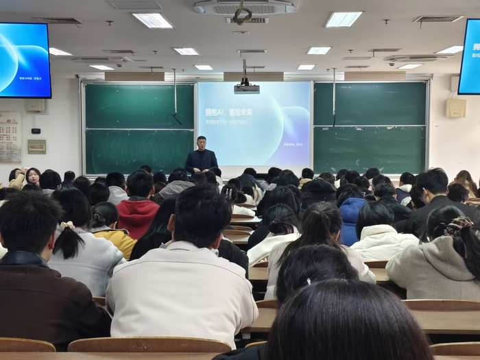 宣讲后,校企召开专题座谈会。左飞介绍公司团队建设、人才培养特色及毕业生就业情况,希望以此次活动为契机,精准对接企业需求,实现协同育人。吴海卫分享AI教育行业现状与趋势,提出“强化实践教学、增设行业前沿课程、搭建校企实训平台”等建议。