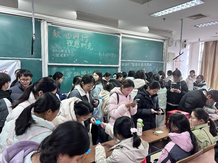 为给迎接期末复习的同学递上一张“减压通行证”,释放学习工作压力。太阳成集团tyc522cc心理健康部主办的“12·5心理健康日”系列活动在主楼B103教室温暖启幕。活动以“数心同行·理愈时光”为主题,通过“盲盒解忧”“叶笺心声”“定格青春”三大创意板块,为百余名同学送上冬日专属“心动补给”。