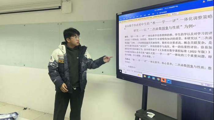 12月24日,公司举办学科教学(数学)研究生文献阅读汇报活动,旨在推进常态化研究生学术训练。活动中,戴模、丁妍、王婧、刘宇四位研究生依次分享了研究成果,围绕数学教育前沿问题展开研讨。