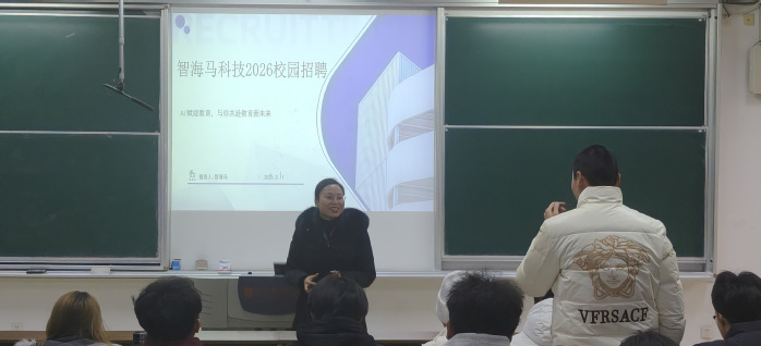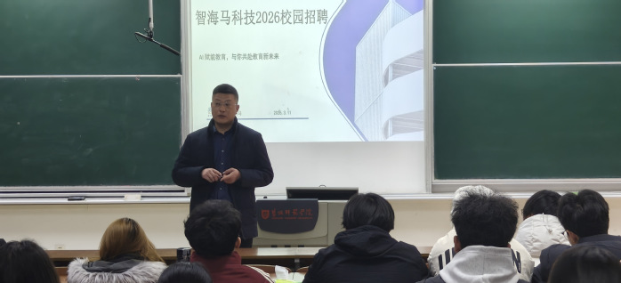 宣讲环节,吴海卫结合自身求学与创业经历,详细介绍了公司AI赋能教育的核心业务、企业文化及发展规划。该公司以AI技术为核心驱动力,聚焦学科辅导与个性化教育领域,依托大数据分析与智能算法,为学员定制专属学习方案,同步推出智能伴学、在线答疑等特色服务,为高校学子搭建了优质的就业成长平台。同时,吴海卫寄语学弟学妹,要扎实夯实专业基础,科学做好职业规划,在实践中锤炼本领、实现价值。