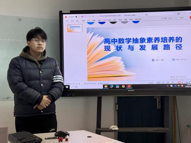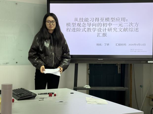 汇报中,七位同学紧扣专业热点,围绕教学模式创新(如微项目化与大单元教学)、人工智能赋能数学教育,以及核心素养与抽象素养的培养路径等前沿方向,进行了详细的分享与交流。